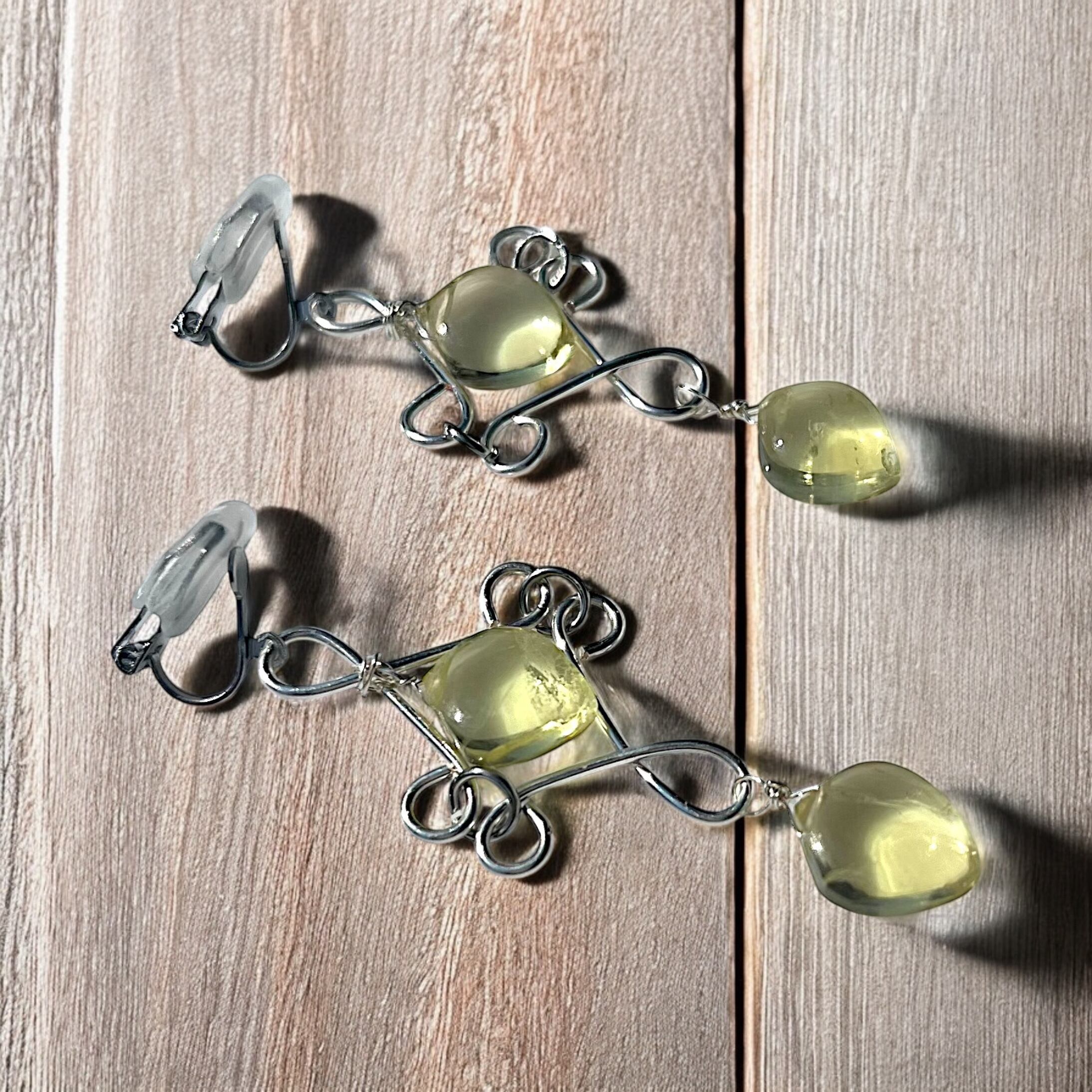 美しいレモンクォーツを使用したワイヤーアートのイヤリングです。優しい黄色が、日常に明るい光を添えさせるデザインとなっています。カジュアルからフォーマルまで幅広いシーンでご活用いただけます!