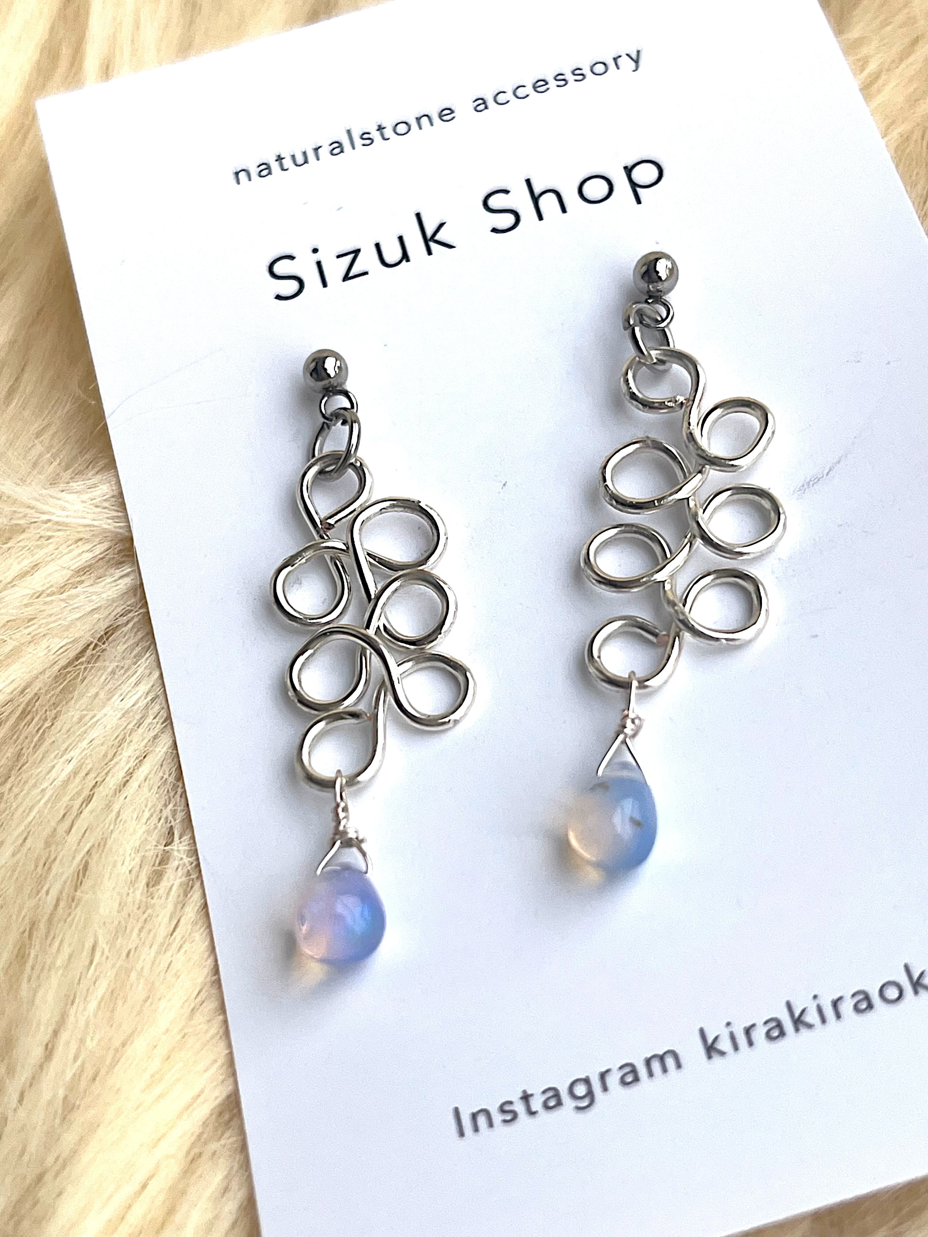 カラーオパール ワイヤーモチーフ 天然石ピアス silver