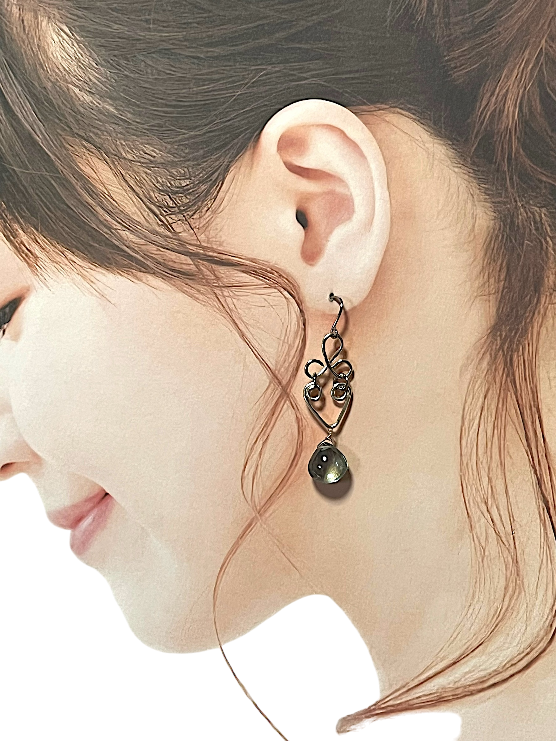 美しい色合いのフローライトを使用したワイヤーモチーフのピアスです。透明感のある石が耳元を華やかに演出し、デイリースタイルから特別なシーンまで幅広くご利用いただけます!