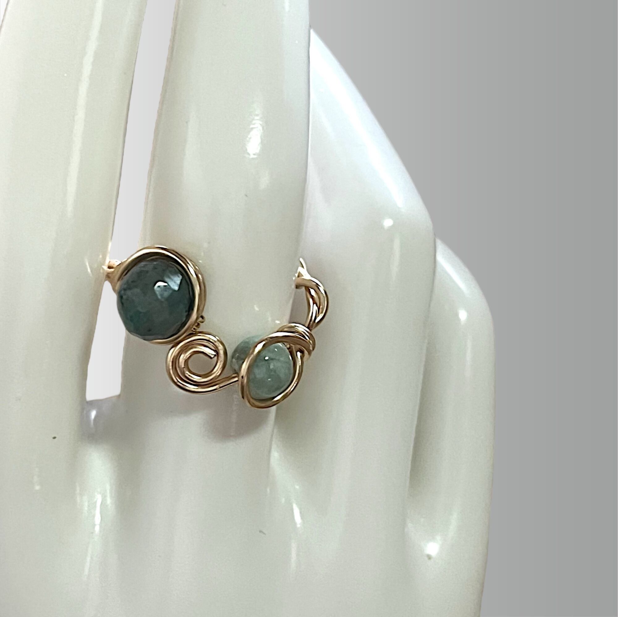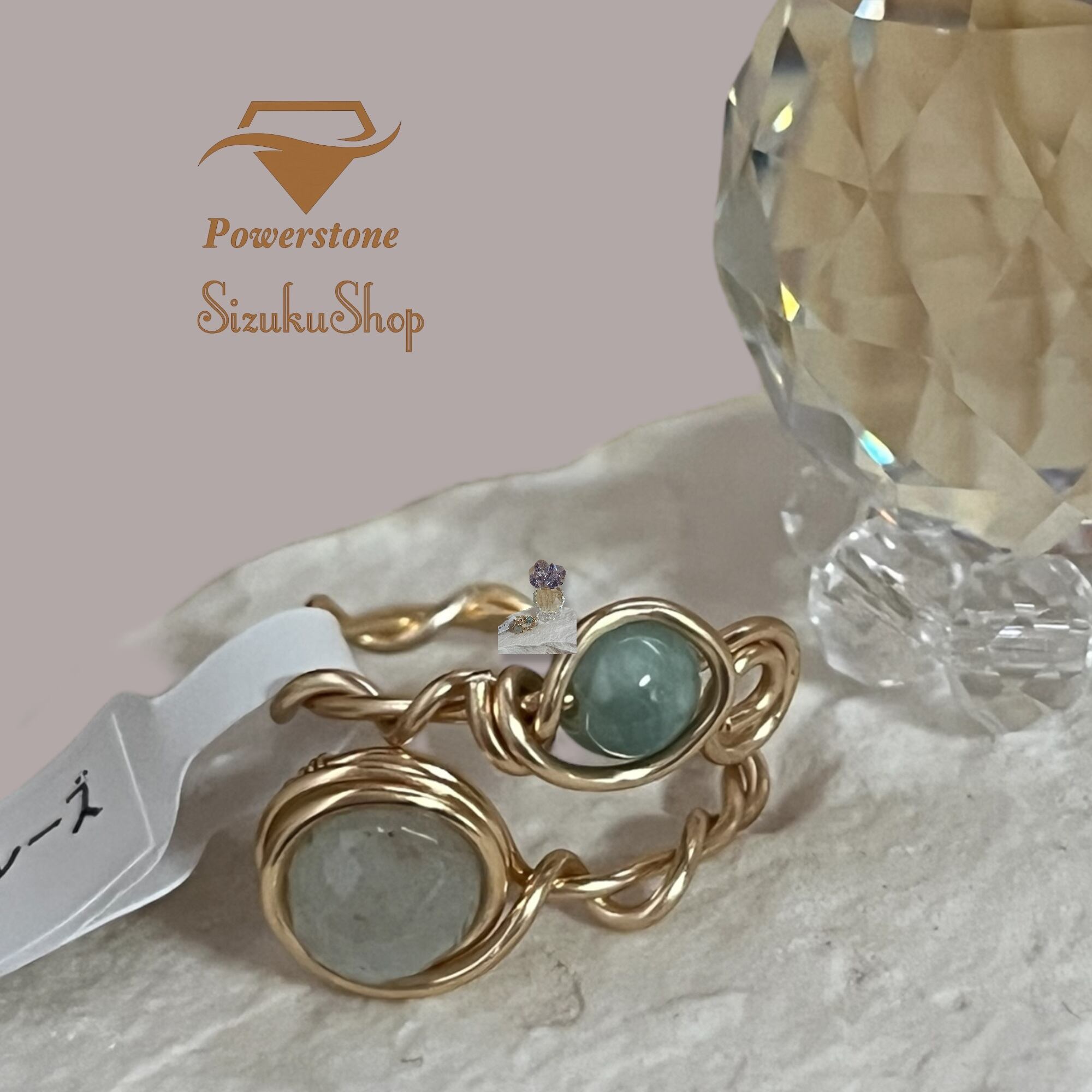 美しいクリソプレーズと翡翠を使ったフリーリングです。心を落ち着かせる優しいグリーンが特長で、特別なシーンから日常のコーディネートまで幅広くご活用いただけるアイテムです!