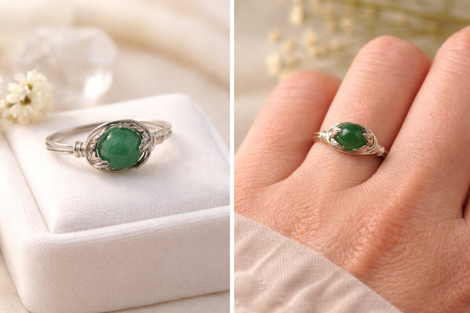 存在感のあるグリーンオニキスのワイヤーリングは、深い緑と独特の光沢が特徴で、あなたの指を美しく彩ります!シンプルなデザインですが、主張があり、カジュアルな日常使いから特別なシーンまで幅広く活躍します。あなたのスタイルを引き立てる素敵なアイテムです!