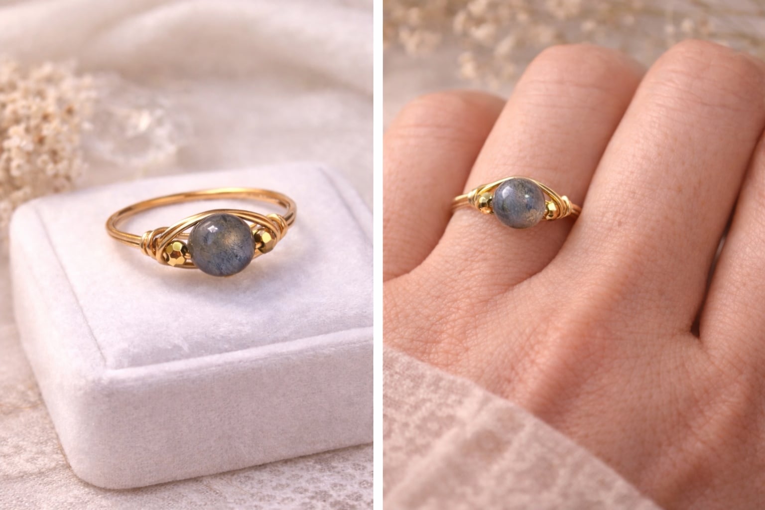 ラブラドライトとヘマタイトのワイヤーリングは、神秘的な輝きと落ち着いた色合いが特徴です!シンプルながらも洗練されたデザインで、日常使いはもちろん、特別なシーンでもあなたの指を華やかに彩ります。素敵なアクセサリーで、あなたのスタイルを引き立てます!