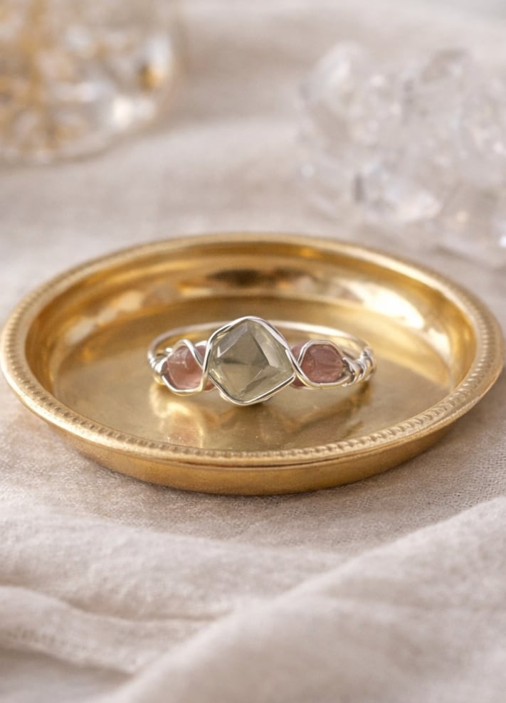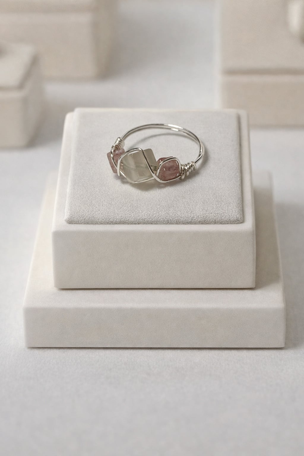 グレーオニキスとピンクアベンチュリンのワイヤーリングは、シックなグレーと優しいピンクのコンビネーションが特徴です!シンプルでありながら、特別な存在感を放つデザインで、日常使いはもちろん、特別なシーンでもあなたの指をエレガントに演出します。魅力溢れるアクセサリーで、あなたのスタイルを一層引き立てます!
