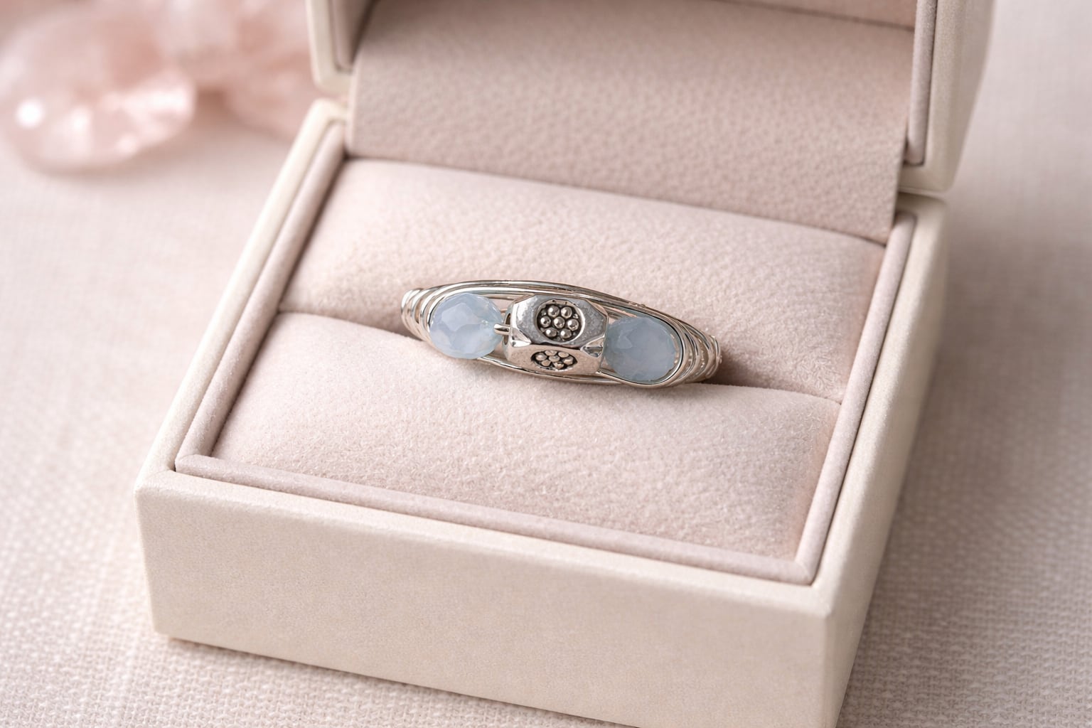 美しいカルセドニーが指元に華やかさを加え、シンプルながらも上品な存在感を持つデザインです!カジュアルな日常使いはもちろん、特別なシーンでも華やかに指を演出します。さりげない美しさが、あなたのスタイルに寄り添います!