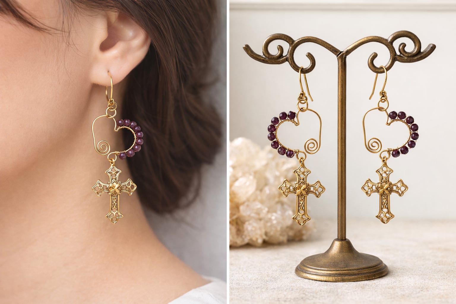 美しいハートワイヤーデザインに、ルビーが輝くクロスピアス。ルビーの豊かな色合いは、耳元に洗練された印象を与え、特別なアクセサリーとして日常使いにもぴったりです!カジュアルなシーンから、フォーマルまで多彩なスタイルをサポートする一品です!