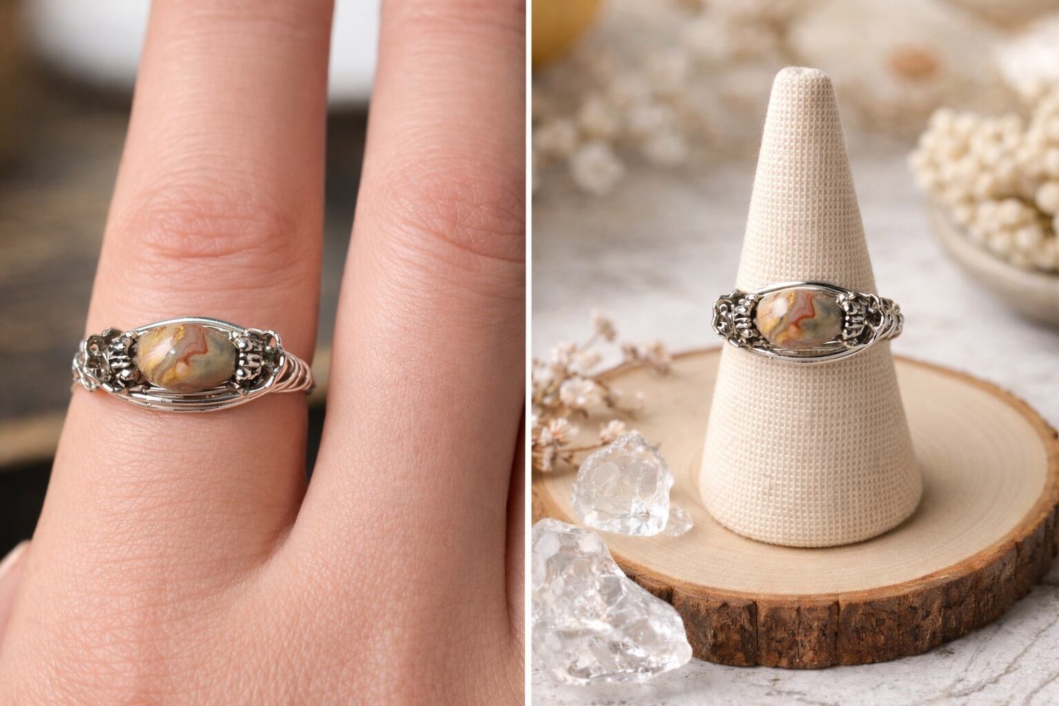 独特の模様と温かみのある色合いが魅力のムーアカイトは、指元を優雅に彩る天然石リングです!アーティスティックなワイヤーデザインがその美しさを引き立て、カジュアルなシーンからフォーマルな場面まで、幅広いスタイルに合わせてお楽しみいただけます。