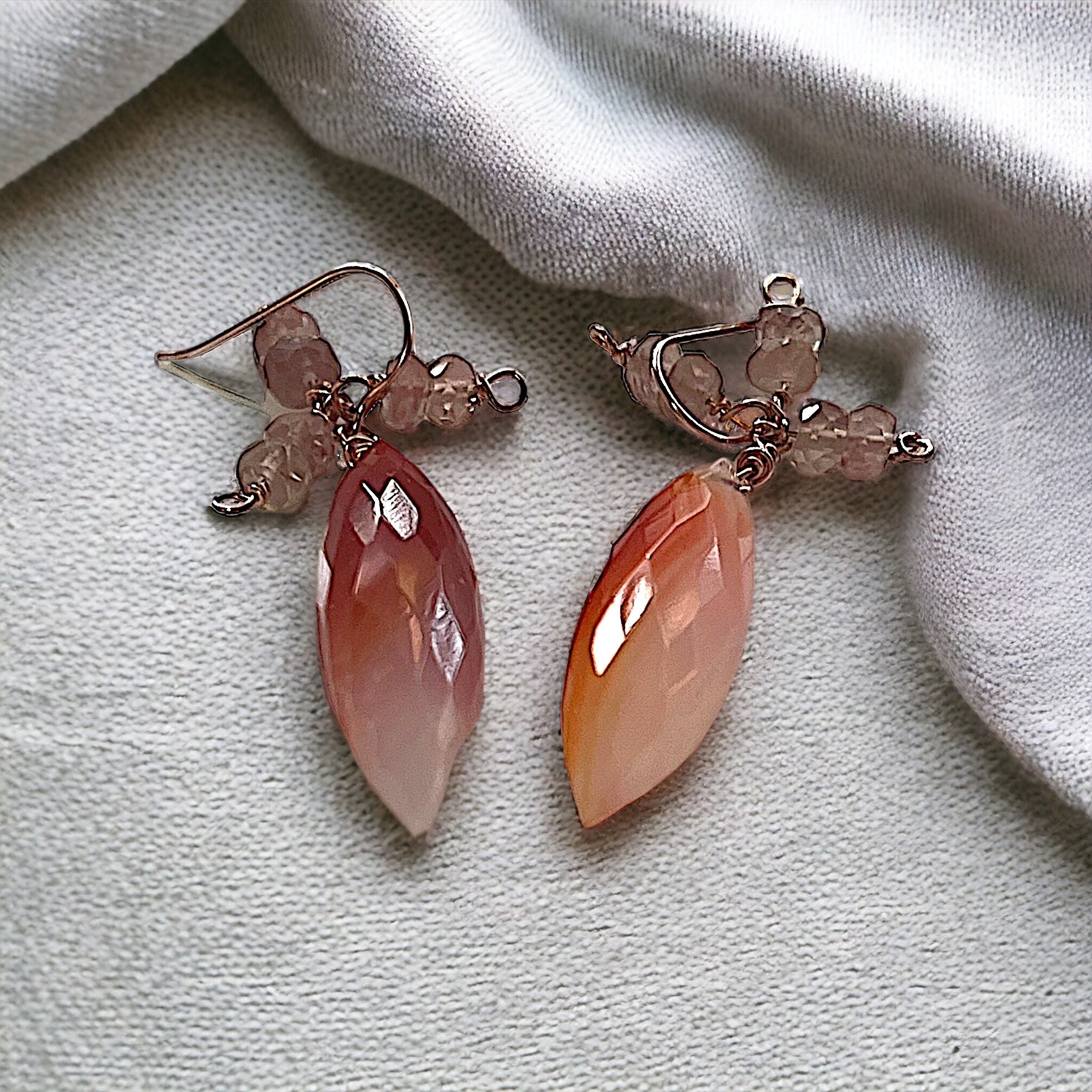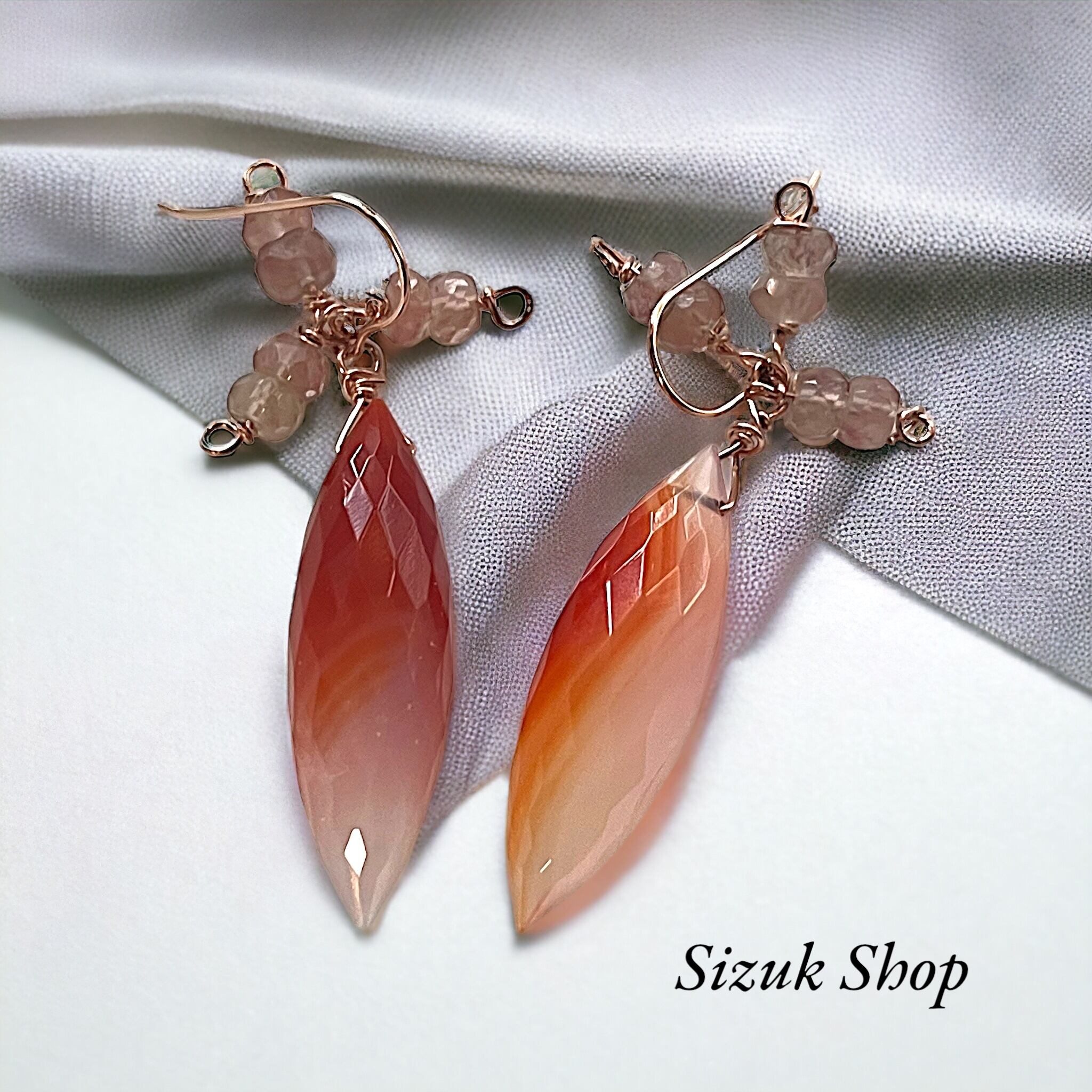 美しい自然のパワーを身に纏いませんか。上品なモンタナアゲートと華やかなアンデシンを組み合わせ、14kgfピンクゴールドで仕上げたピアスです。