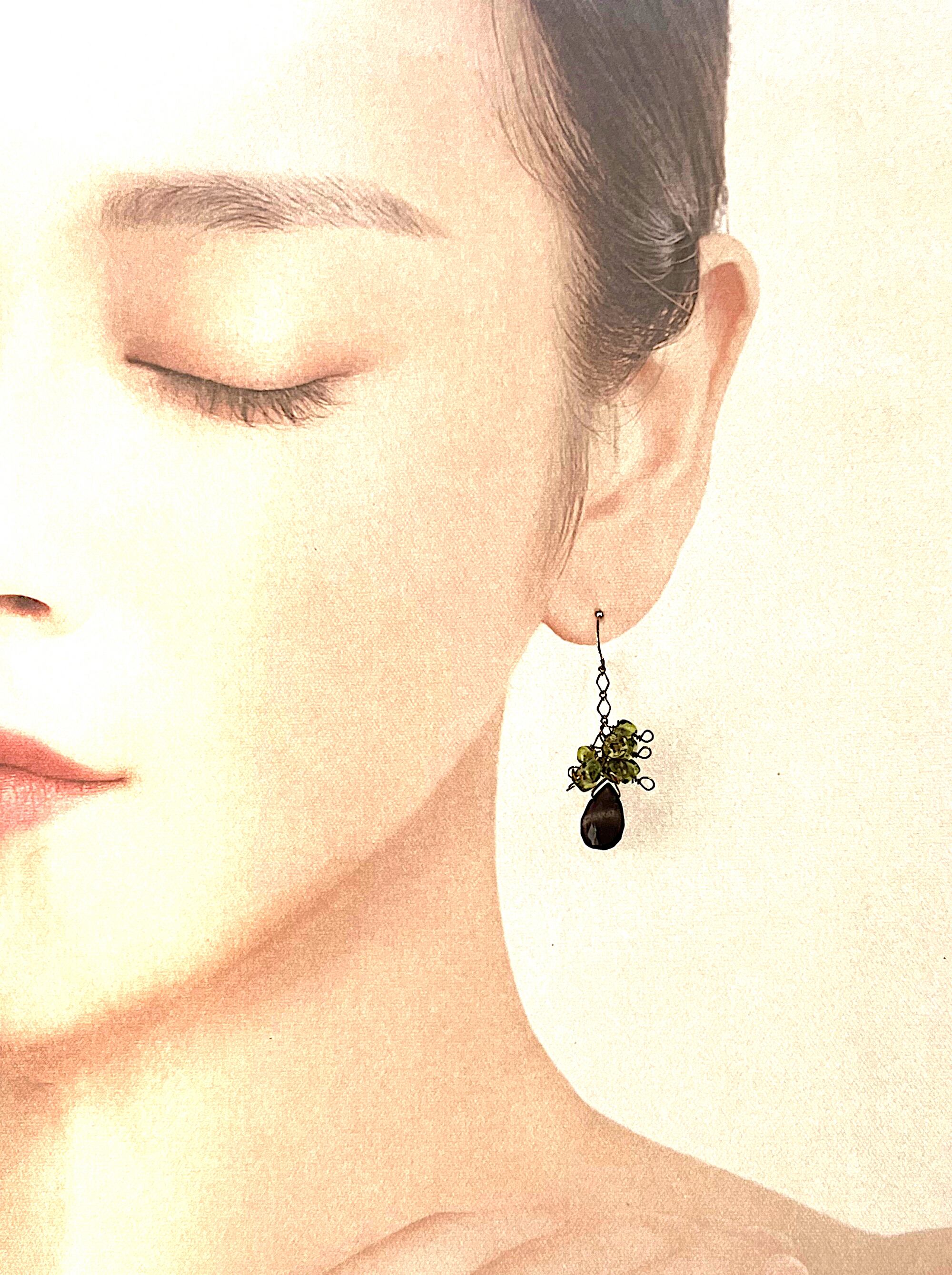 日常での使いやすさと華やかさを兼ね備えています。14kgfの素材を使用する事で高級感があり、デザインもシンプルでありながら、スキャボライトとペリドットが相まって、エレガントな印象を与えます。