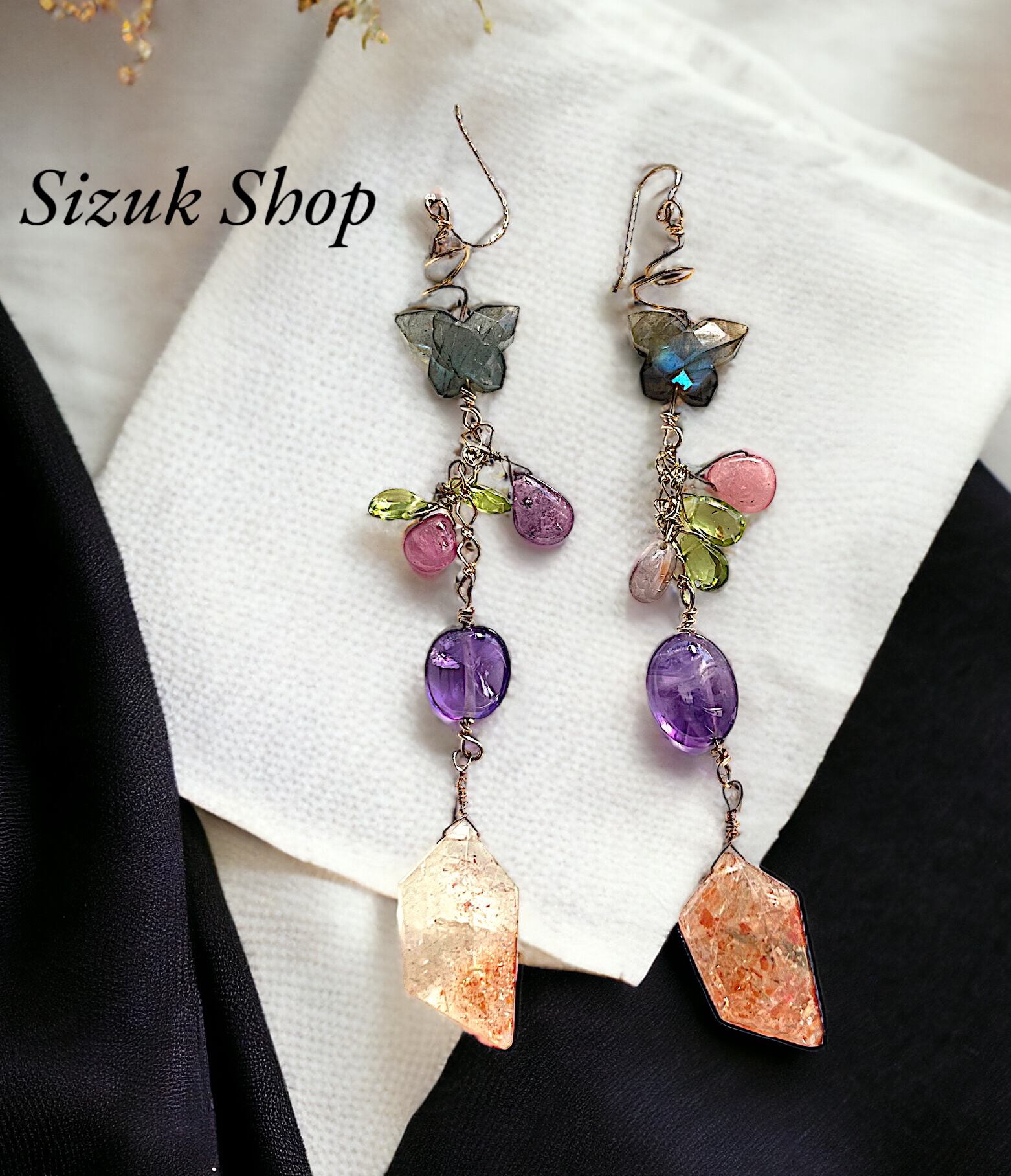 ラブラドライト バタフライ マルチサファイア ロングピアス