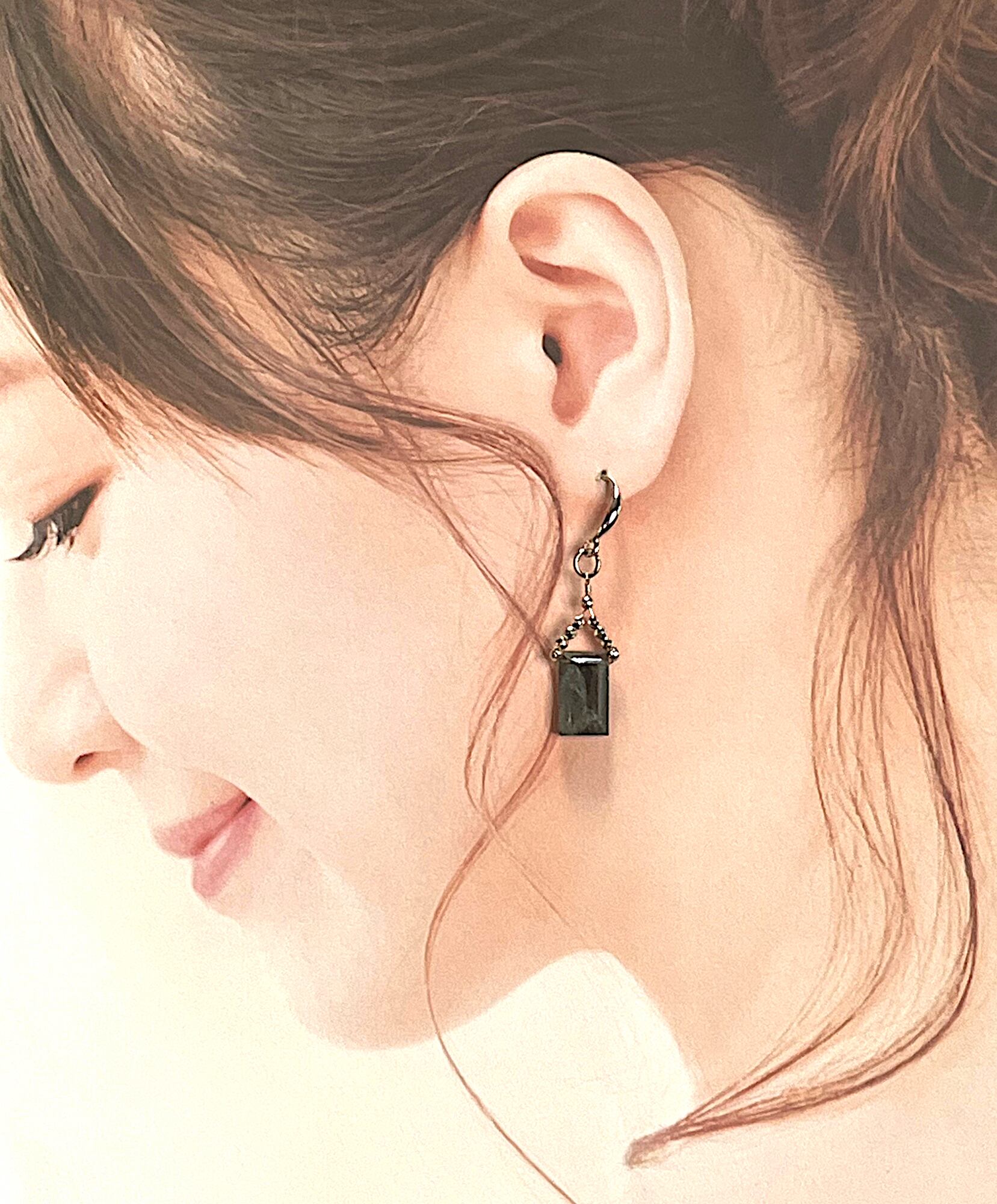 モスアゲート レクタングル シルバー925ピアス
