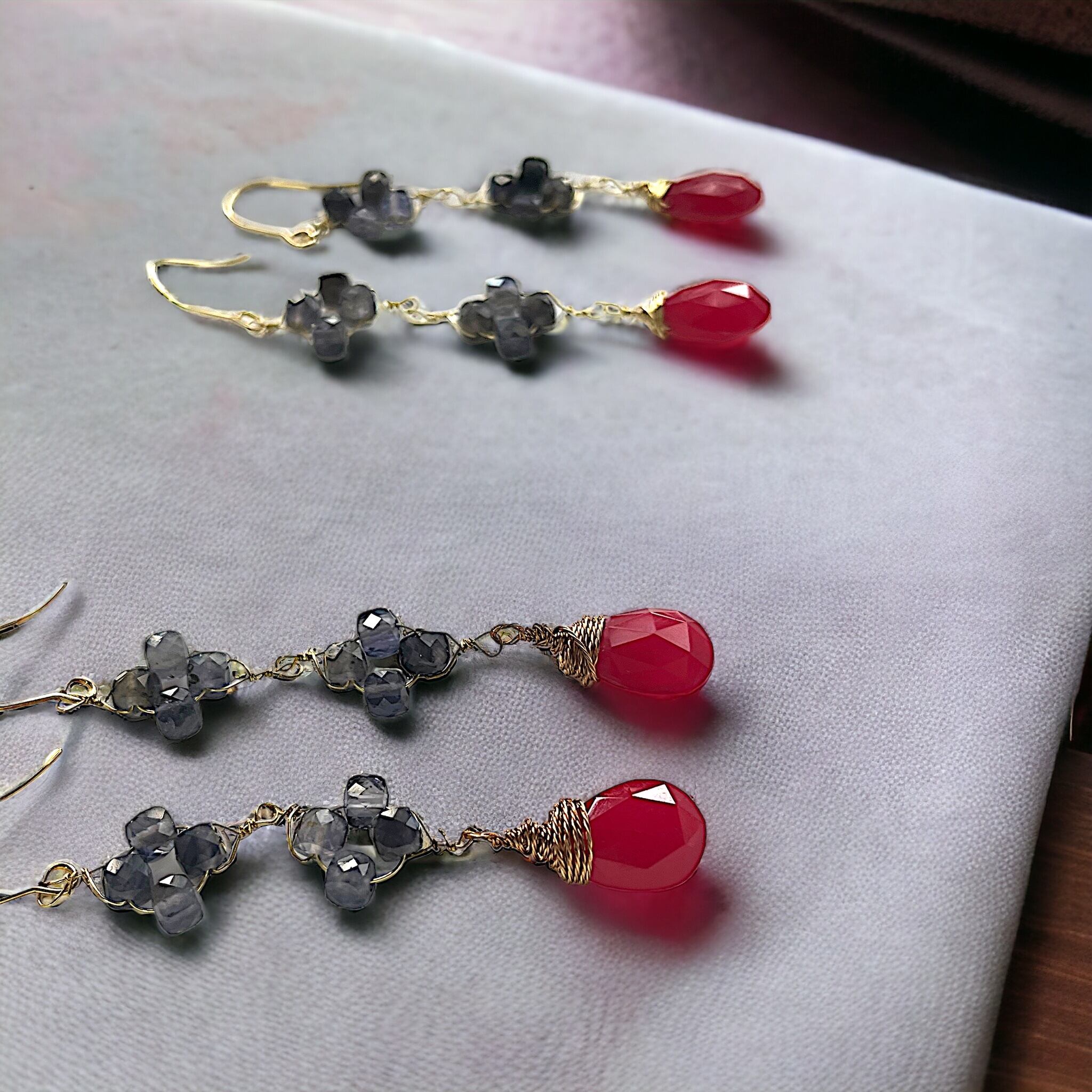 フューシャピンクカルセドニー アイオライト フラワーピアス イヤリング変更可 Bタイプ