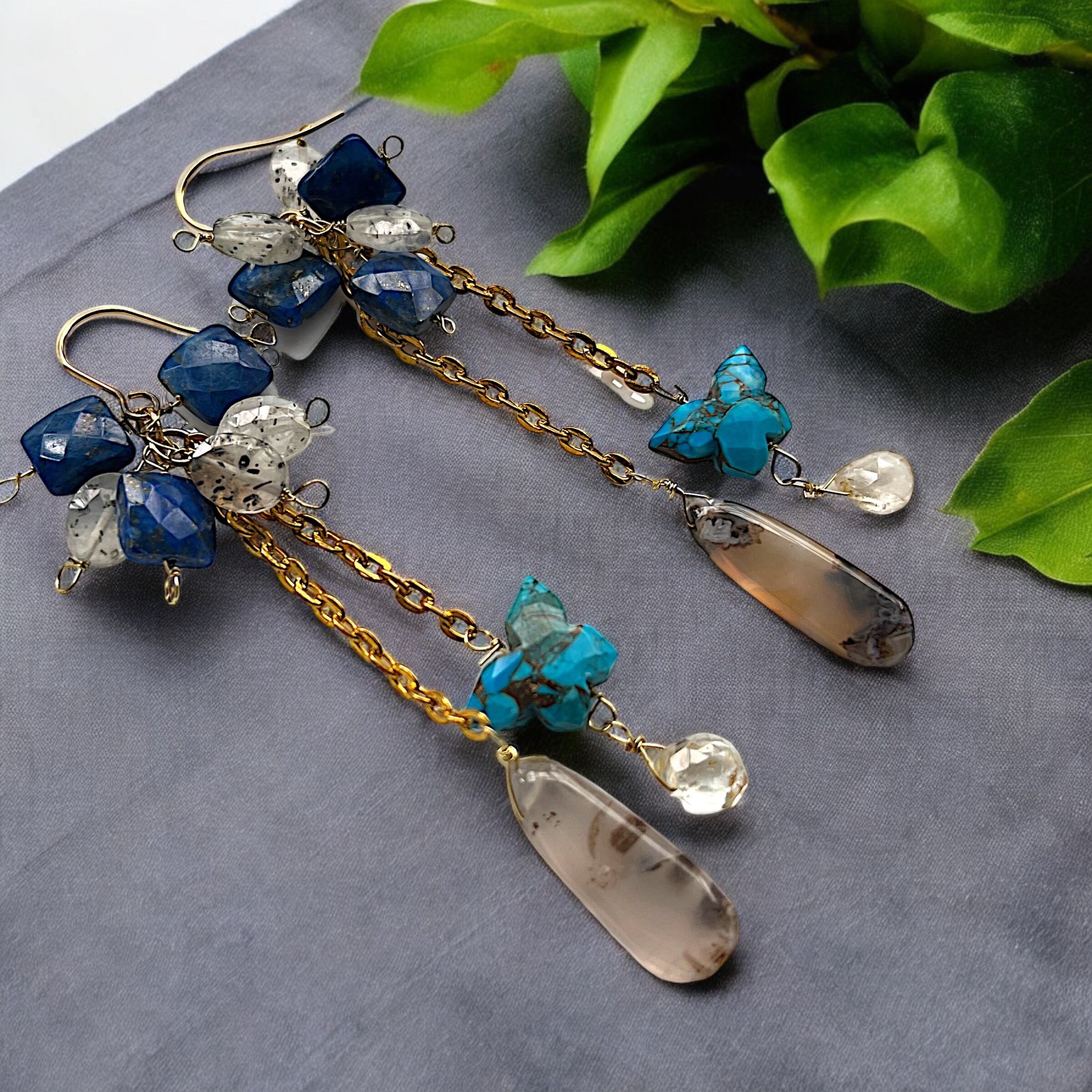 美しいピクチャーアゲートを使用したこちらのピアスは、その独特の模様とカラーが魅力のアイテムです。バタフライモチーフが軽やかに耳元で揺れ、シンプルなスタイルに華やかさを添えます。デイリーユースはもちろん、特別な日にもぴったりのデザインです。