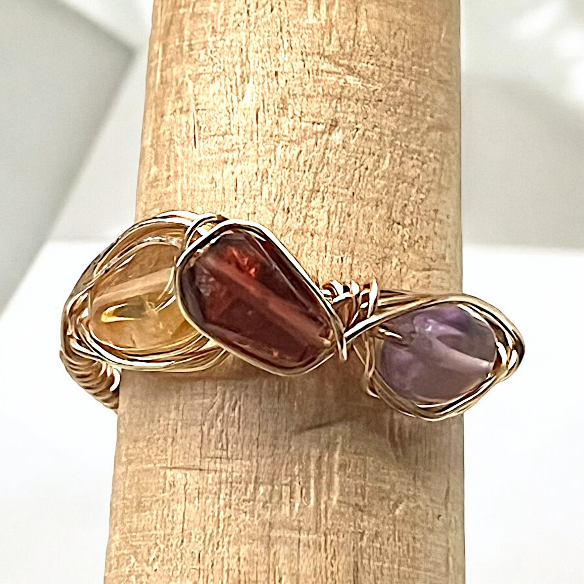 シトリン ガーネット アメジスト リング 天然石指輪 フリーサイズ