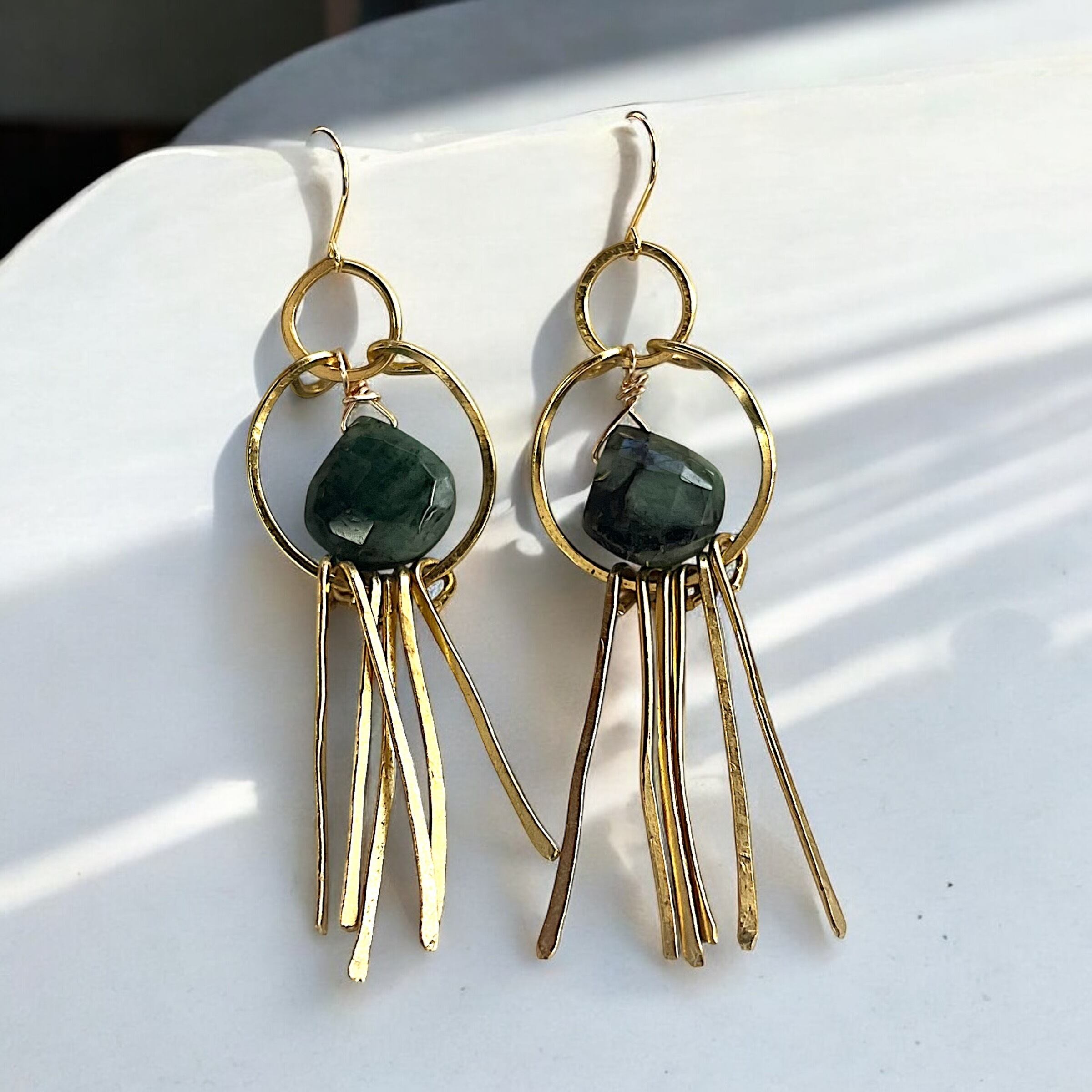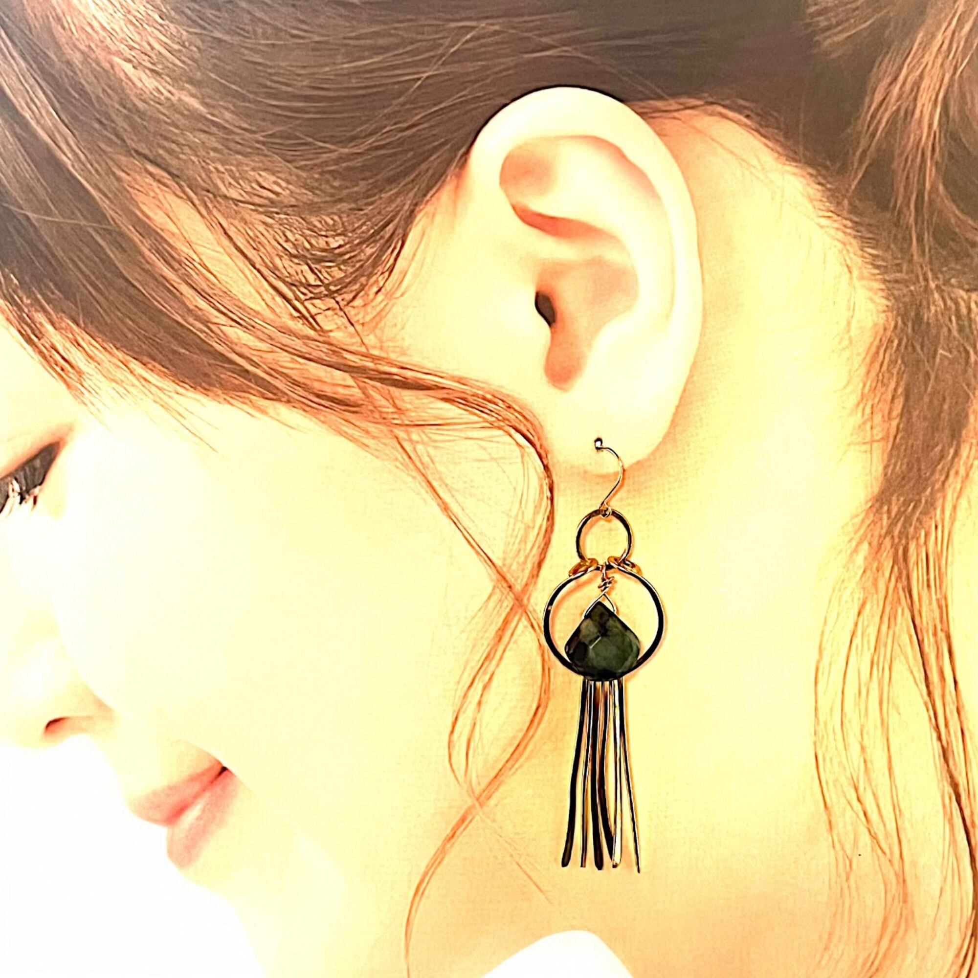 こちらのピアスは、神秘的な緑色のエメラルドが耳元で揺れ、華やかな印象を与えます。フープデザインはシンプルでありながらも美しさが際立ち、特別な日にはもちろん、日常のおしゃれに欠かせないアイテムです!シャラシャラと揺れるたびに視線を引きつけることでしょう。