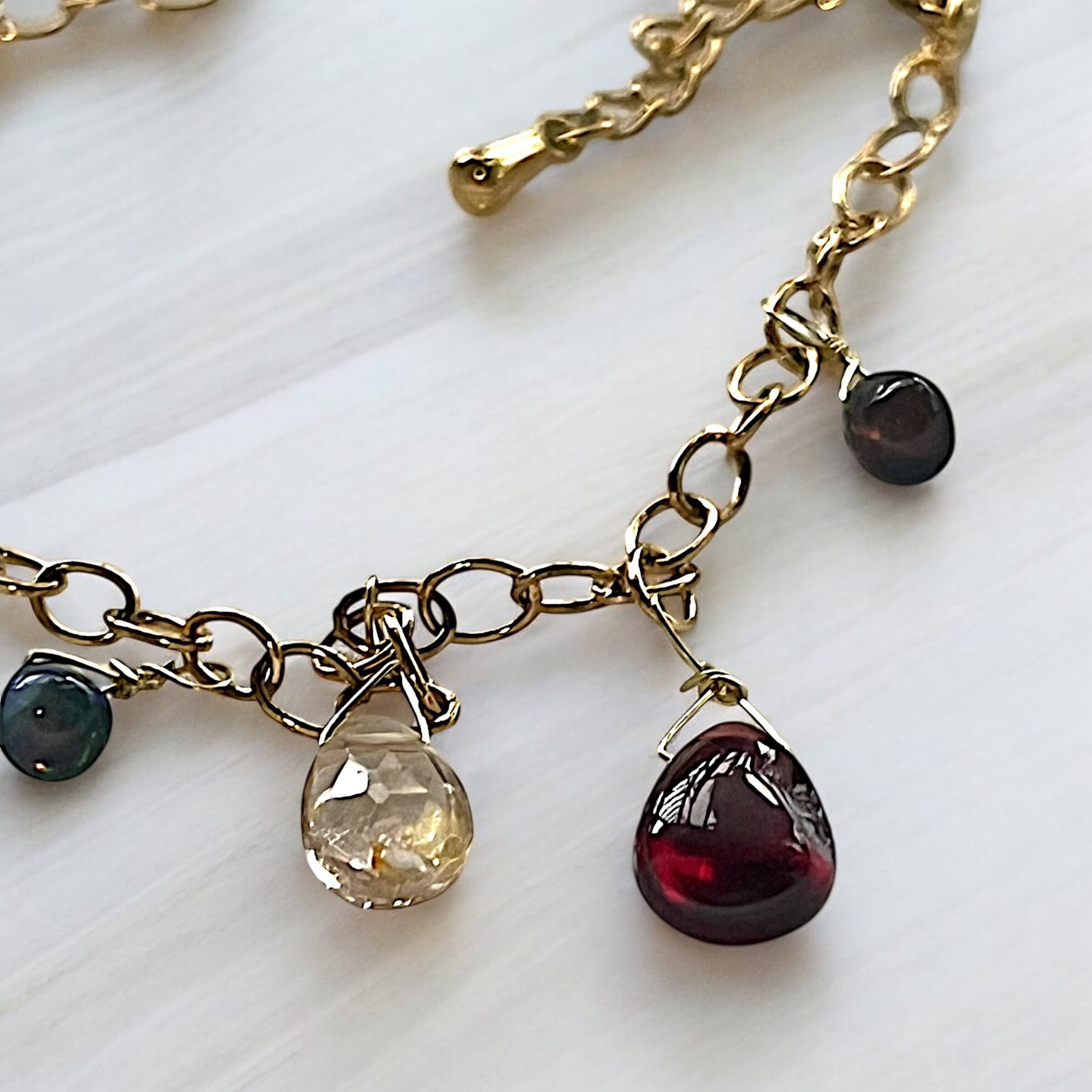 ⭐︎こちらのブレスレットは、豊富な種類の天然石を使用し、ペアシェイプのフォルムが際立つスタイリッシュなデザインです。カジュアルな日常使いから特別なシーンまで、どんなコーディネートにもぴったりです。天然石特有の美しい色合いや模様が手元で輝き、あなたの魅力を一層引き立てます!